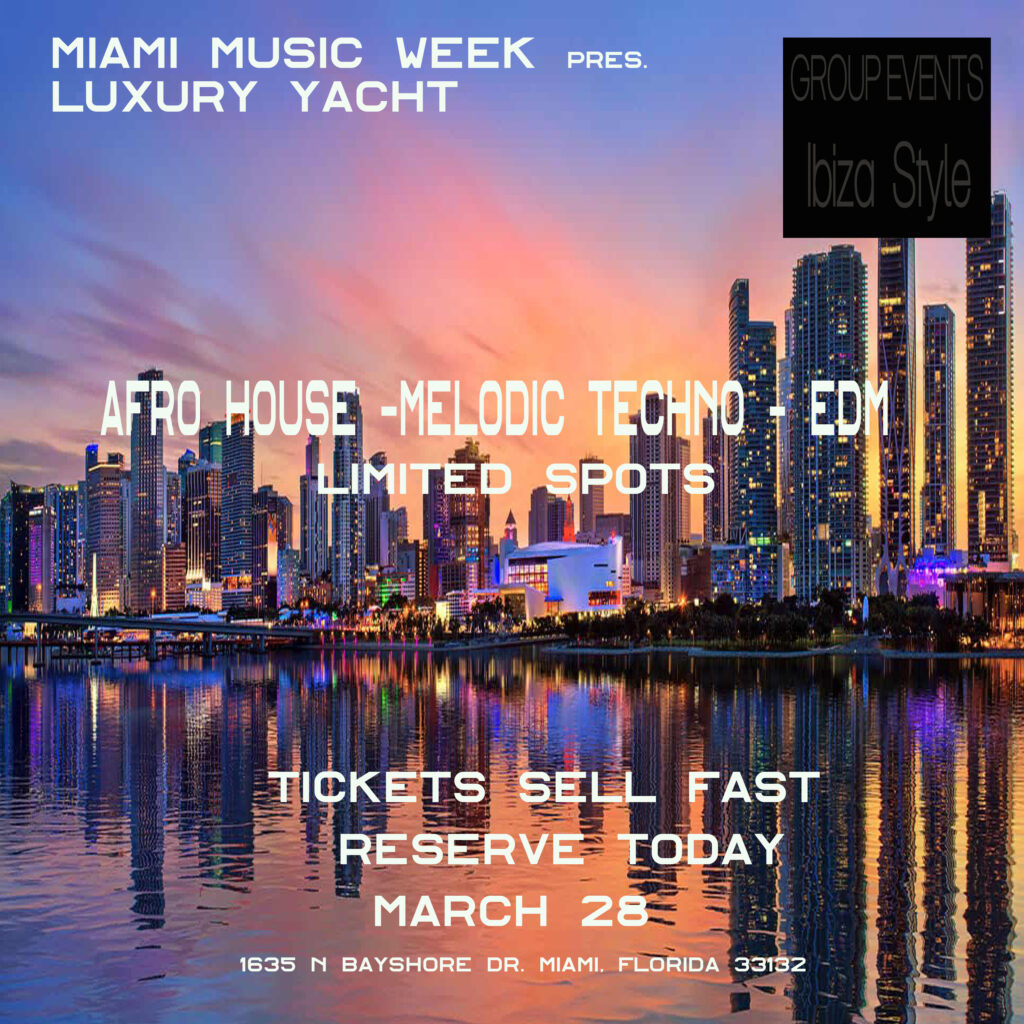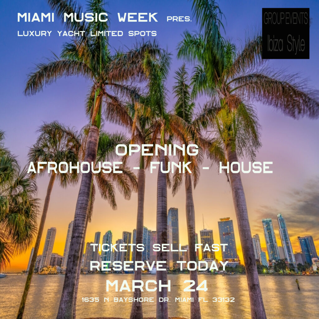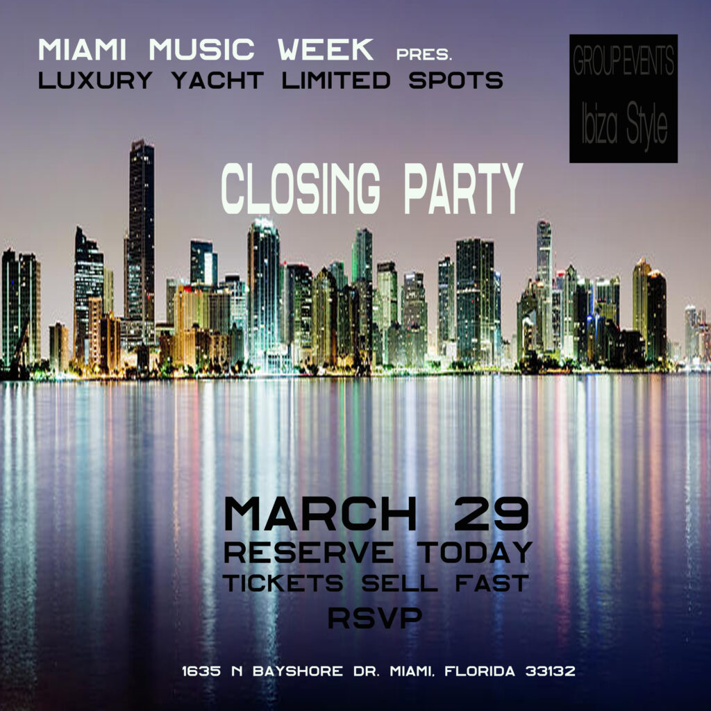 You are cordially invited to join our exclusive Miami Music Week events on 2026. Luxury Yacht VIP Party Ibiza Style celebration March 24th to March 29th .